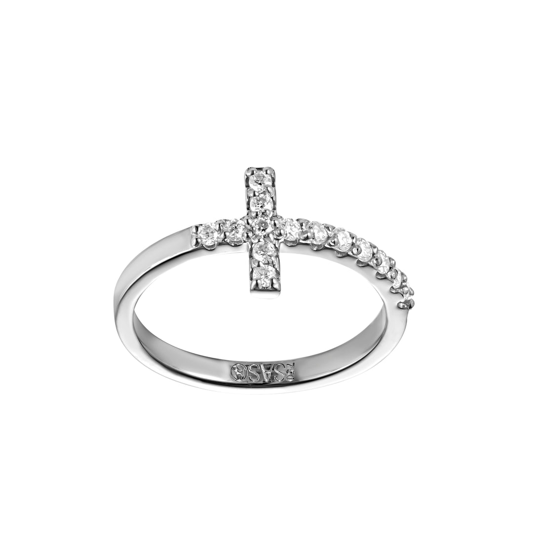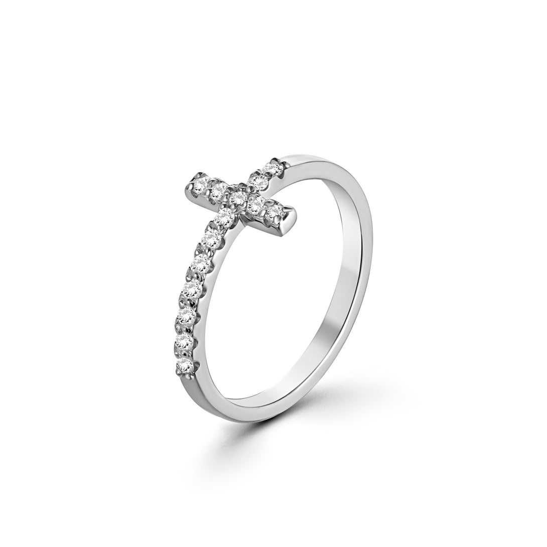A graceful cross-design ring set in 18KT white gold, featuring radiant lab-grown diamonds for a refined and modern sparkle