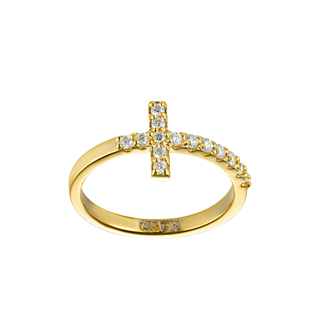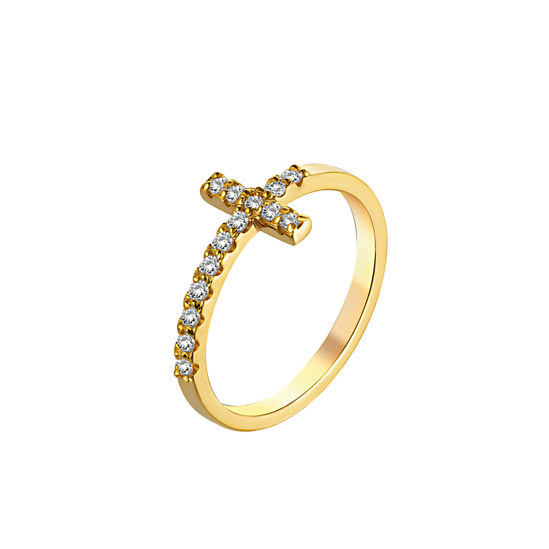 A delicate cross-design ring crafted in 18KT yellow gold, adorned with sparkling lab-grown diamonds for a touch of everyday elegance