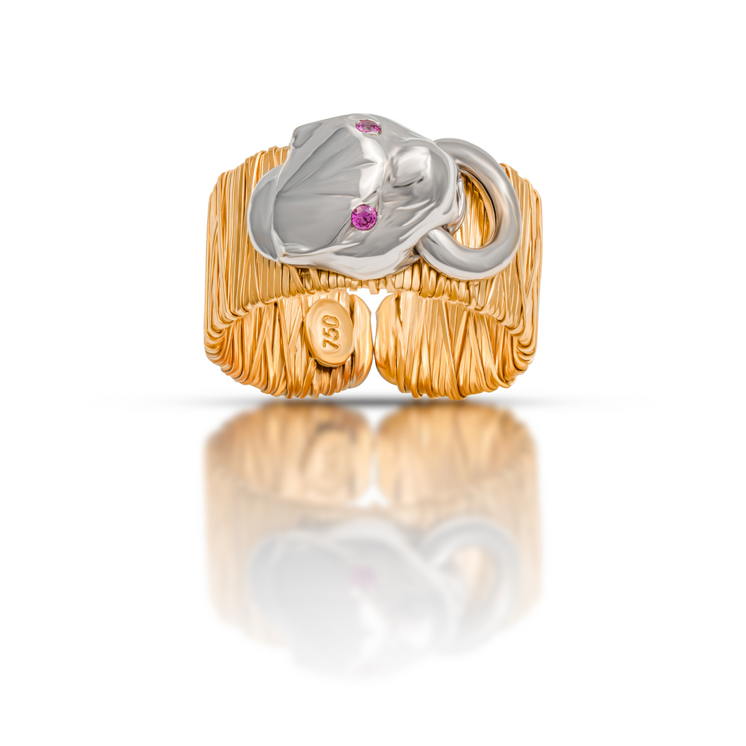 18k Two-Tone Elephant Ring with Pink Pressure Stone Eyes