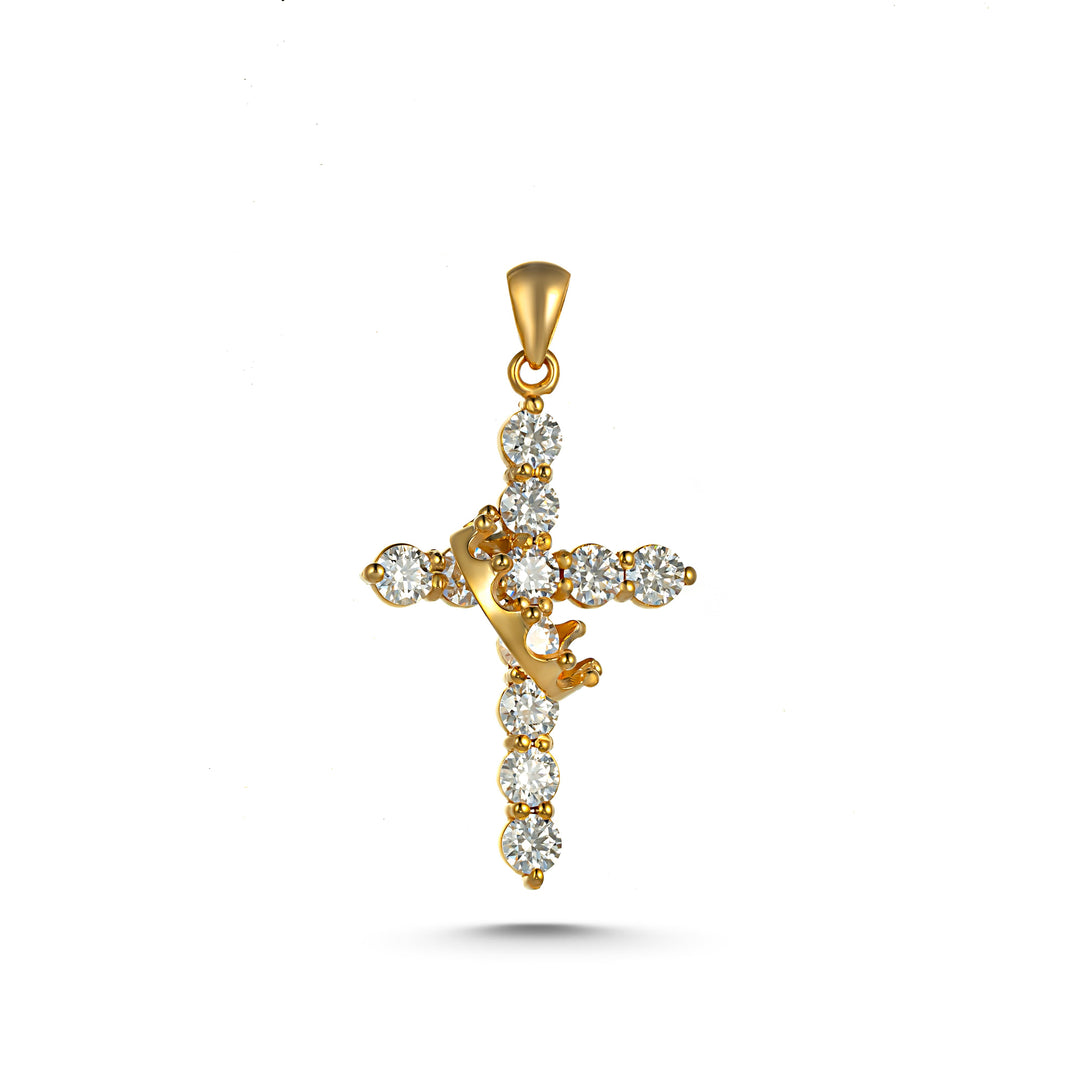 The King’s Crown 18K Yellow Gold Moissanite Cross Pendant